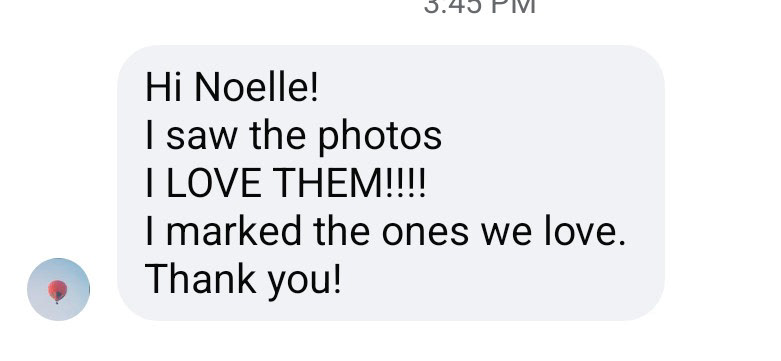 "Noelle was absolutely amazing and the photos came out so perfect! We can't thank her enough! We will cherish these photos of our daughter forever! We really appreciate you Noelle!!!" -Abby